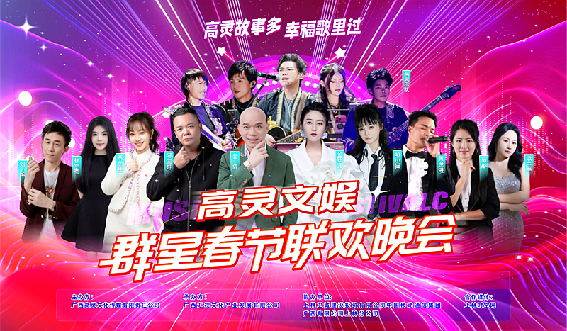 (1月24日)19:00,备受瞩目的【高灵文娱群星春节联欢晚会】,在卫城广场盛大开启!震撼巨幕舞台、千万级舞台效果、炫酷灯光音效、强大演出阵容、现场惊喜连连。演员有阿国哥、广东吴勇、金钰儿、萌小猫、黄世进、丽彤、高灵乐队等一众嘉宾倾情献唱
